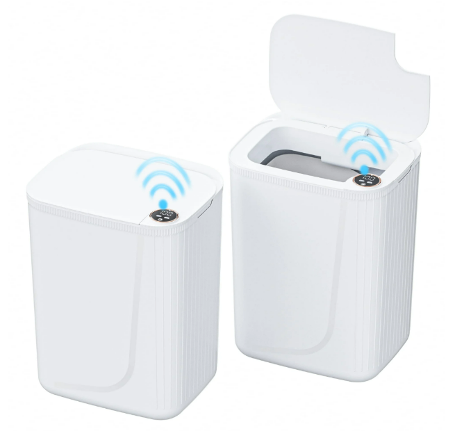 AZULLIA 2 Packs Large 6.5 Gallon Trash Can, Touchless Automatic Plastic Garbage Can with Lid and Display Screen, for Bedroom, Bathroom, Kitchen, White, BS02