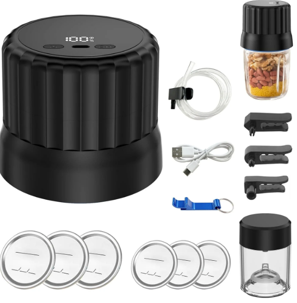AZULLIA Electric Mason Jar Vacuum Sealer Kit for Wide & Regular Mouth Mason Jars for Food Storage, Black GA01